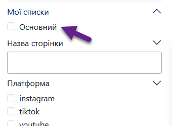 Щоб переглянути збережені профілі, відкрийте розділ фільтра Мої списки в меню Ресурси > Пошук блогерів та оберіть потрібний список.