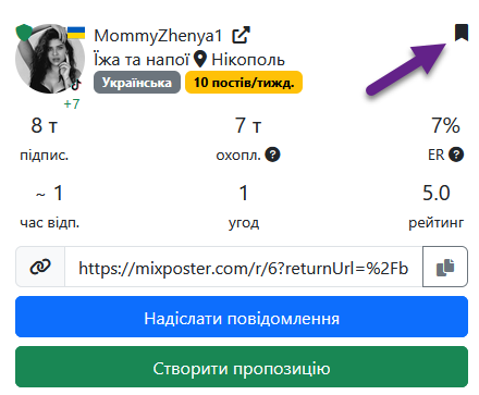 2. На сторінці профілю. Відкрийте сторінку блогера та натисність на відповідну кнопку"Закладка"