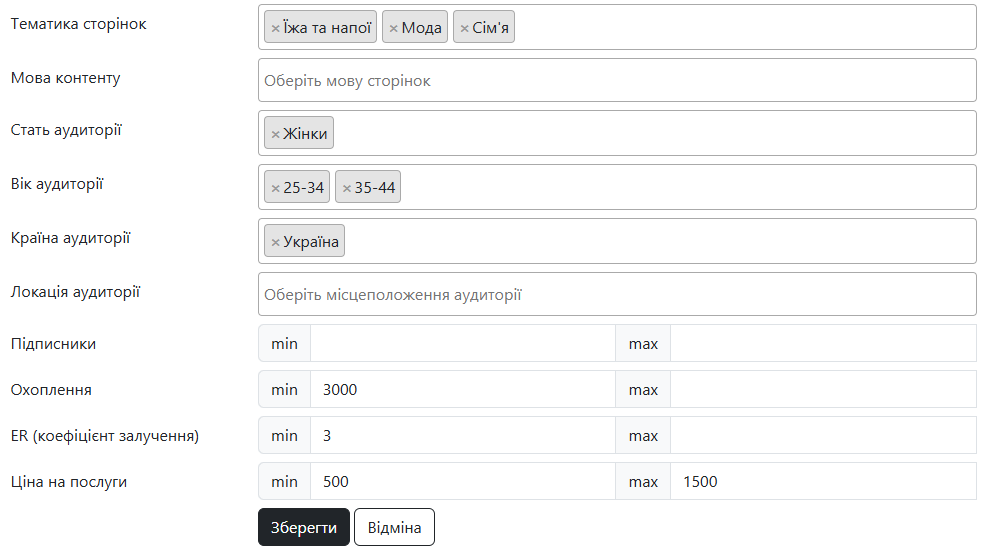 • Вік аудиторії: 25–34, 35–44. Вкажіть основний віковий діапазон.